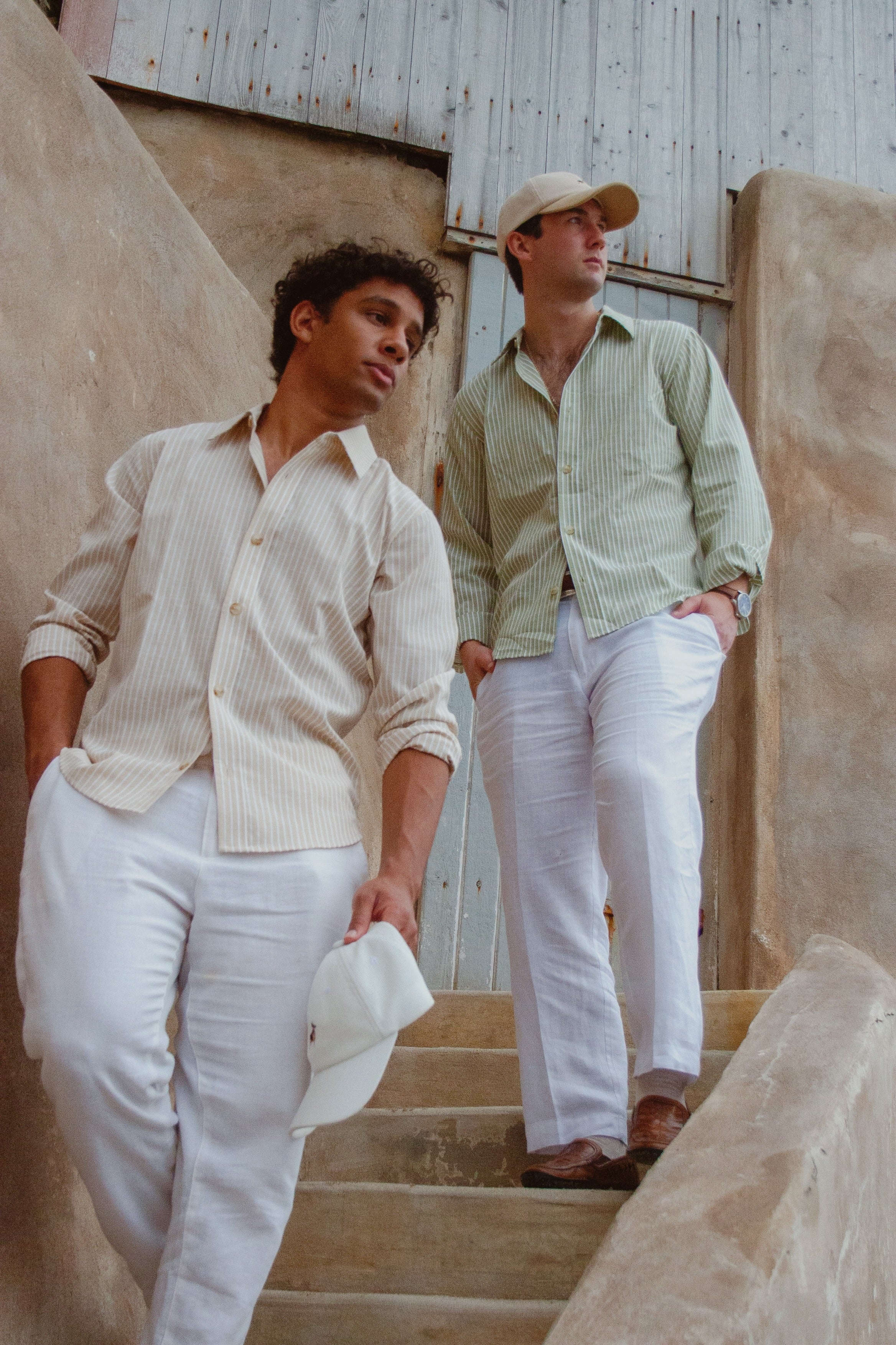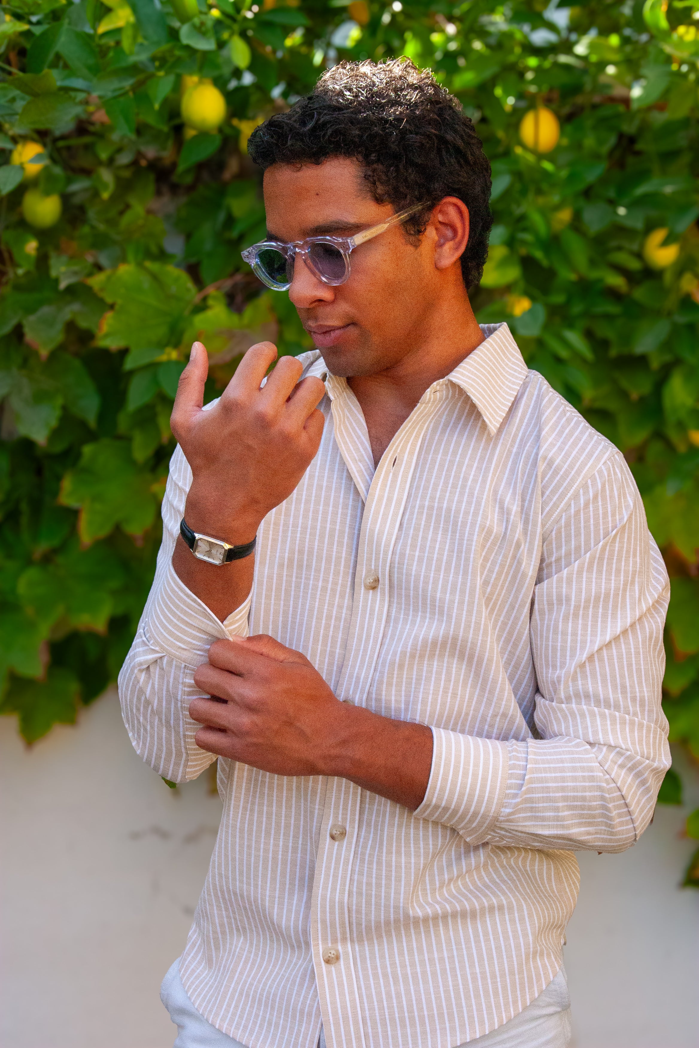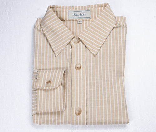 Men’s Beige/White Striped Dress Shirt by Ethan Galvan