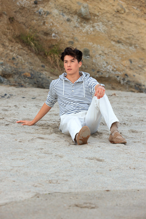 OCÉAN White/Navy Nautical Striped Hoodie (Limited)