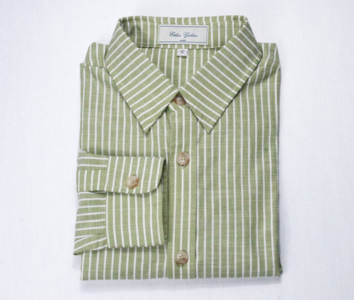 Men’s Pistachio/White Striped Dress Shirt by Ethan Galvan